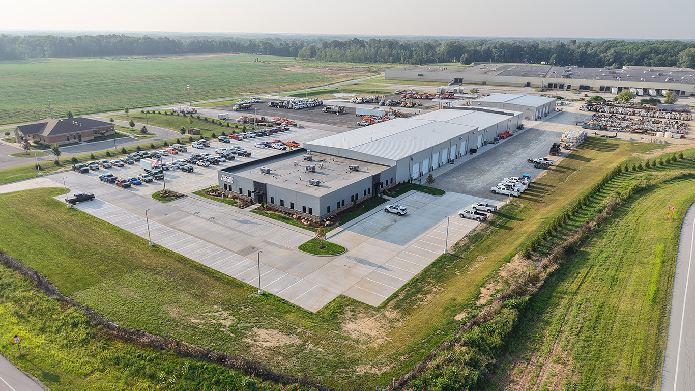 The new headquarters, located in Norwalk, Ohio, spans two buildings totaling 57,000 square feet and features dedicated spaces for office and training, as well as a large area for service, fabrication, and striping. The office facility features FALK’s HFW40 wall panel installed horizontally in HPS Pure Grey on the exterior. The large service and fabrication portion of the facility utilizes both FALK’s wall and roof panels: FALK’s HFW40 wall panel installed vertically in HPS Goosewing Grey on the exterior, and SSR42 roof panels in SMP Bright White. The entire facility features the PE Bright White coating on the interior.