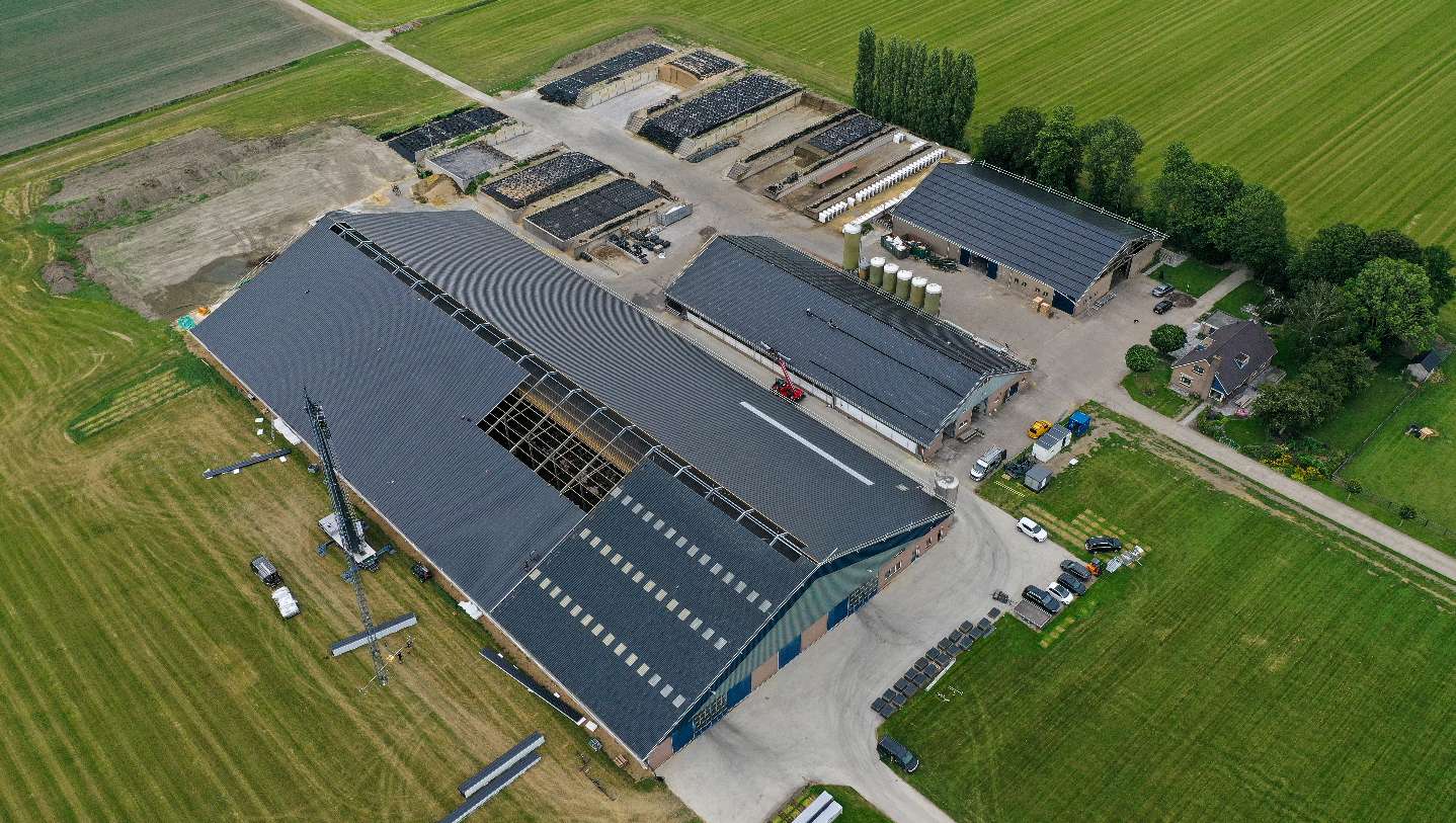 In 2020, the roofs of the stables at Van Veelen Holsteins farm in Biddinghuizen were replaced. The stables were partly covered with asbestos cladding, which were replaced with FALK 1100 TR3+ panels. The inner side is finished with an agri-coating, which comes with a 15-year warranty. The agri-coating has been specially developed for the agricultural sector and makes the panels more resistant to various influences – and therefore more long-lasting. The roof panels were then fitted with 4,038 solar panels, equating to a total capacity of 1.5MW! On the way to a sustainable future.