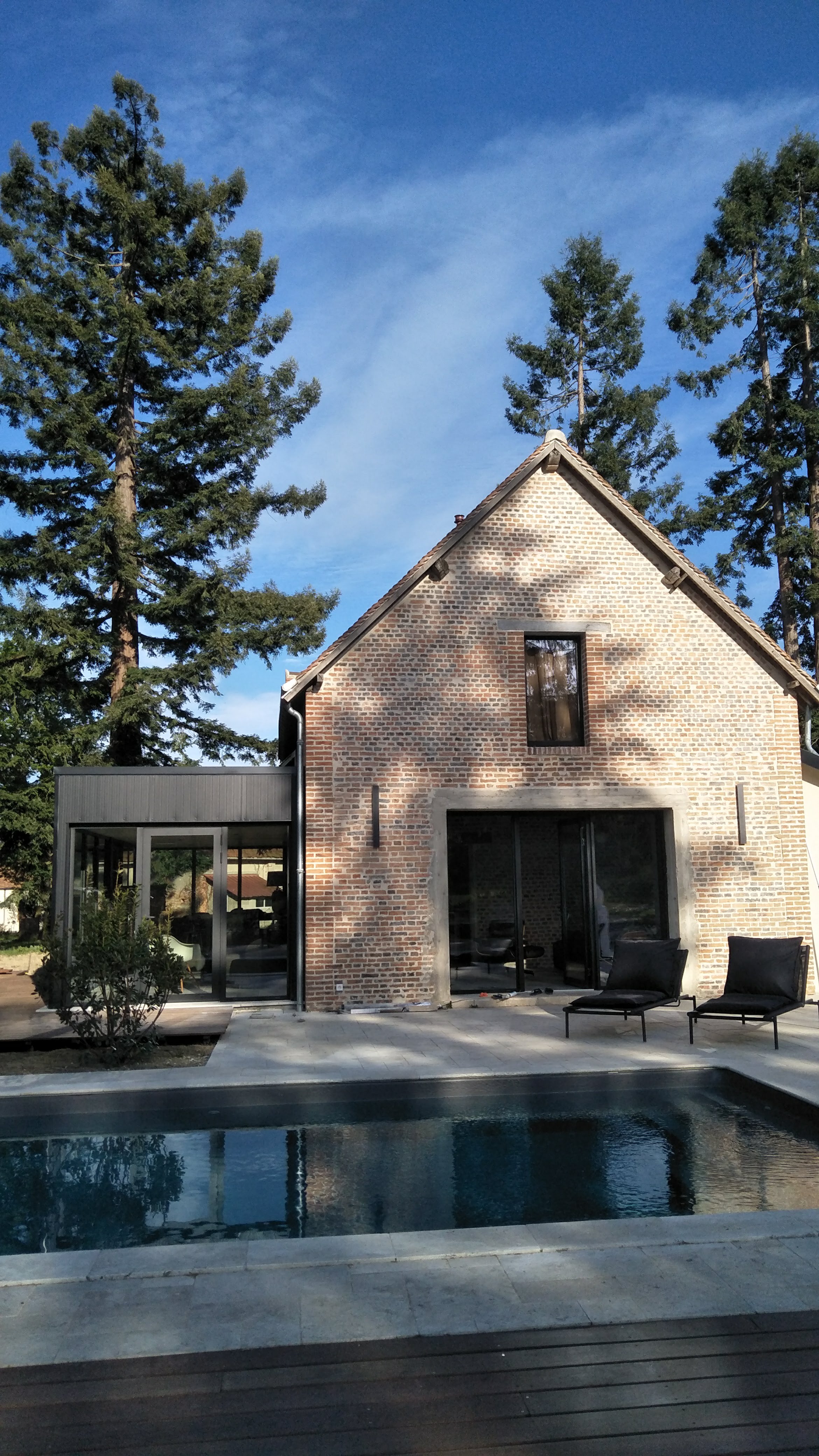 Couleur : RAL9005, un joli noir mat qui sublime la brique de la maison déjà existante et s'accorde parfaitement avec la végétation et le bois de la terrasse !