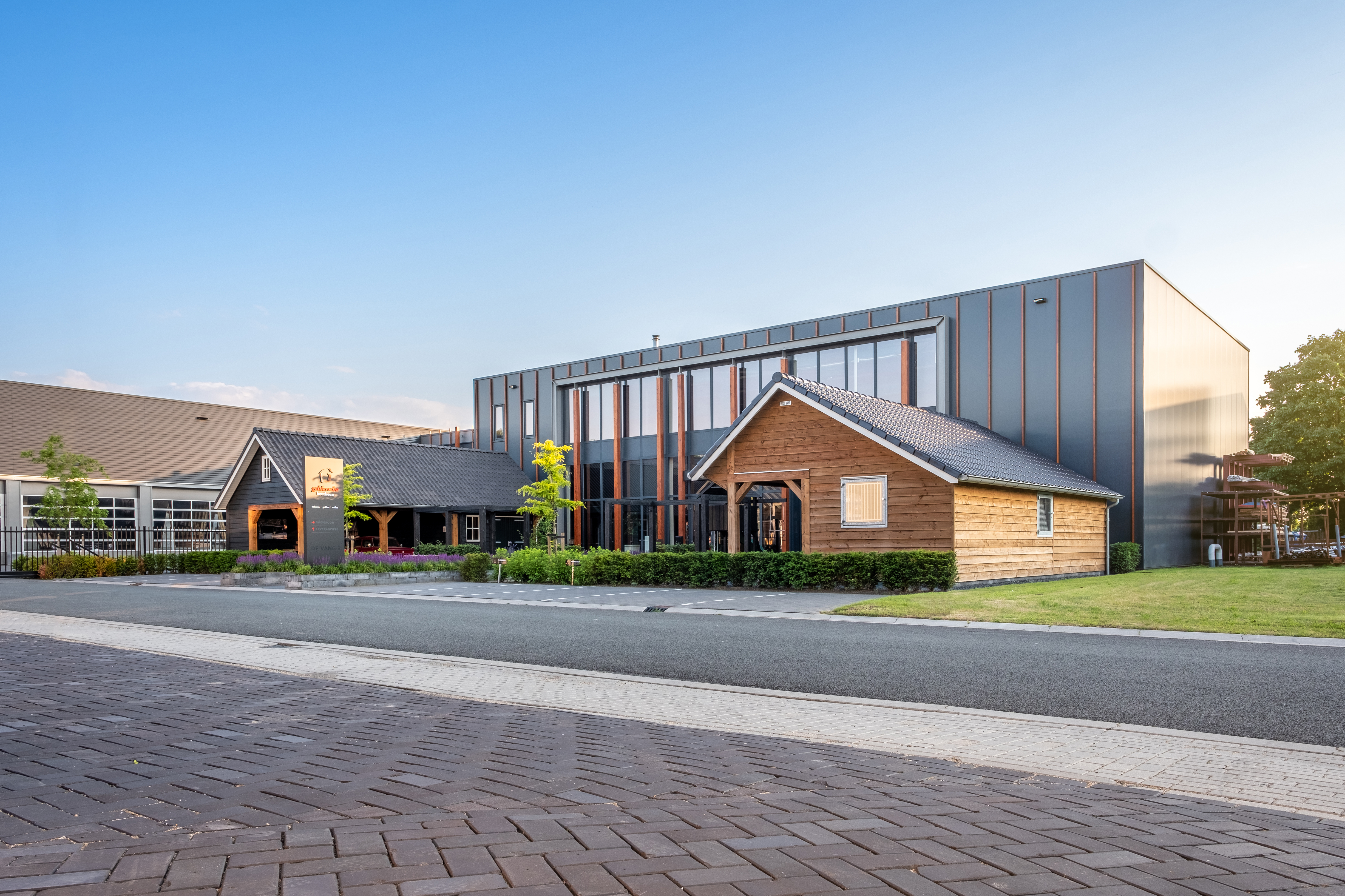 Architektenburo Guido Bakker uit Veenendaal heeft een prachtig ontwerp gemaakt met, onder andere, FALK sandwichpanelen. De toegepaste sandwichpanelen zijn van het type FALK 1060 WB in de kleuren zwart en grijs. De sandwichpanelen zijn afgewerkt met houten delen en een glazen pui, wat het gebouw een open en natuurlijke uitstraling geeft. De montage van de sandwichpanelen is uitgevoerd door Hardeman Isolatie uit Kootwijkerbroek.
