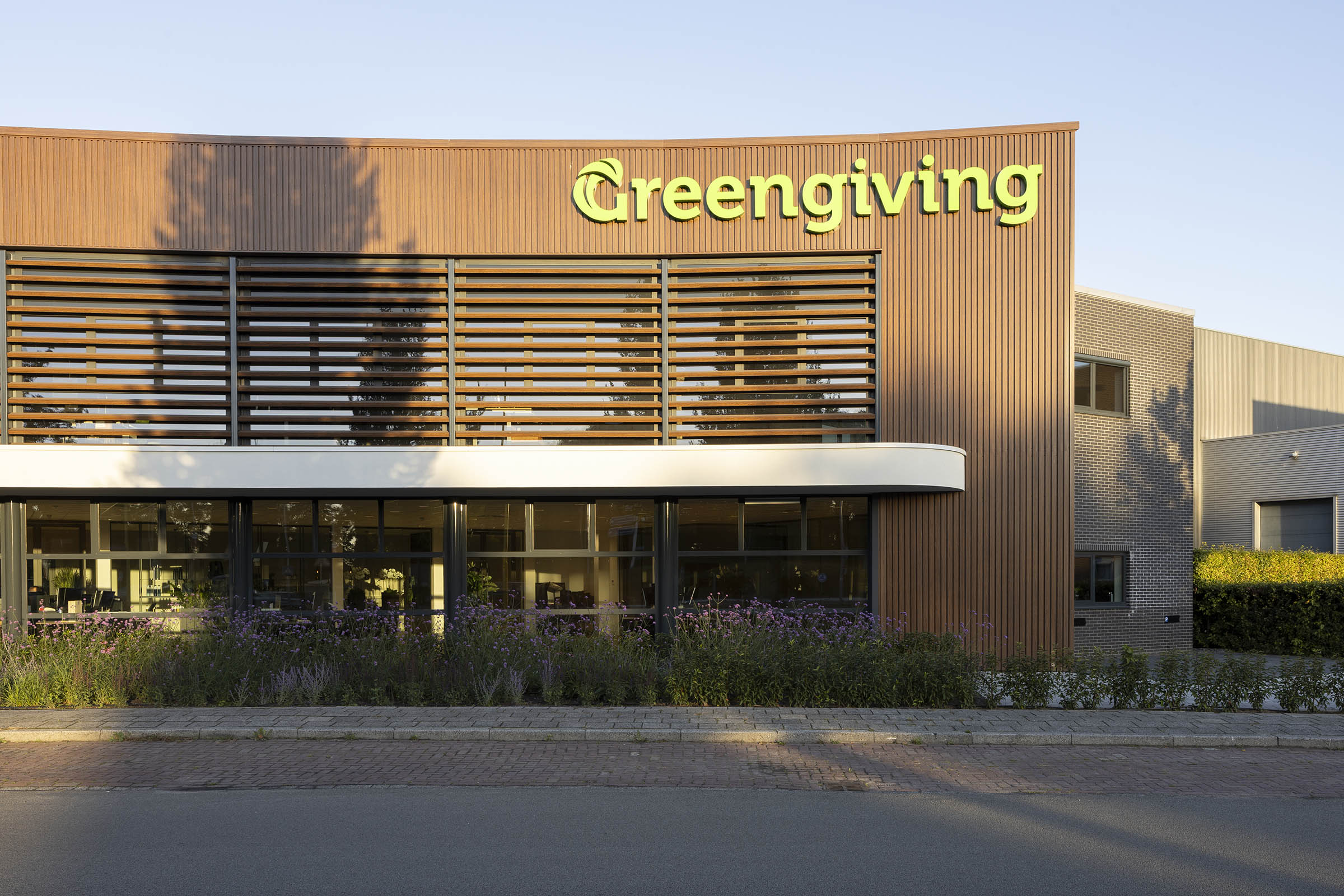 Zo verhuisde het Barneveldse bedrijf recent naar een grotere locatie op industrieterrein De Briellaerd in Barneveld. Dit bestaande pand werd onder architectuur gerenoveerd, waarbij een link werd gelegd tussen de natuurtinten van de materialen en de duurzame producten van Greengiving.