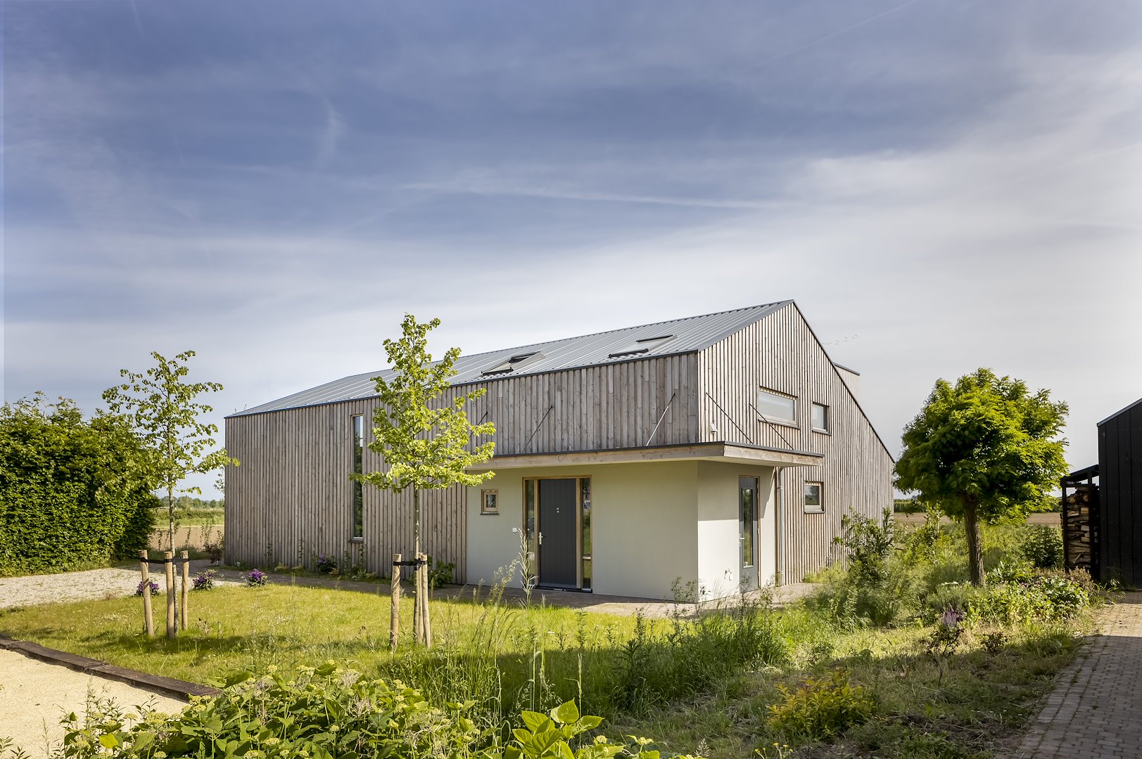 In het Geldersche Leuth vlakbij Nijmegen prijkt in het polderlandschap een prachtige houten villa. Aan de zijde van de straat presenteert het huis zich als een gesloten, houten schuur, terwijl de gevel aan de polderzijde zich opent onder een hellend dak.