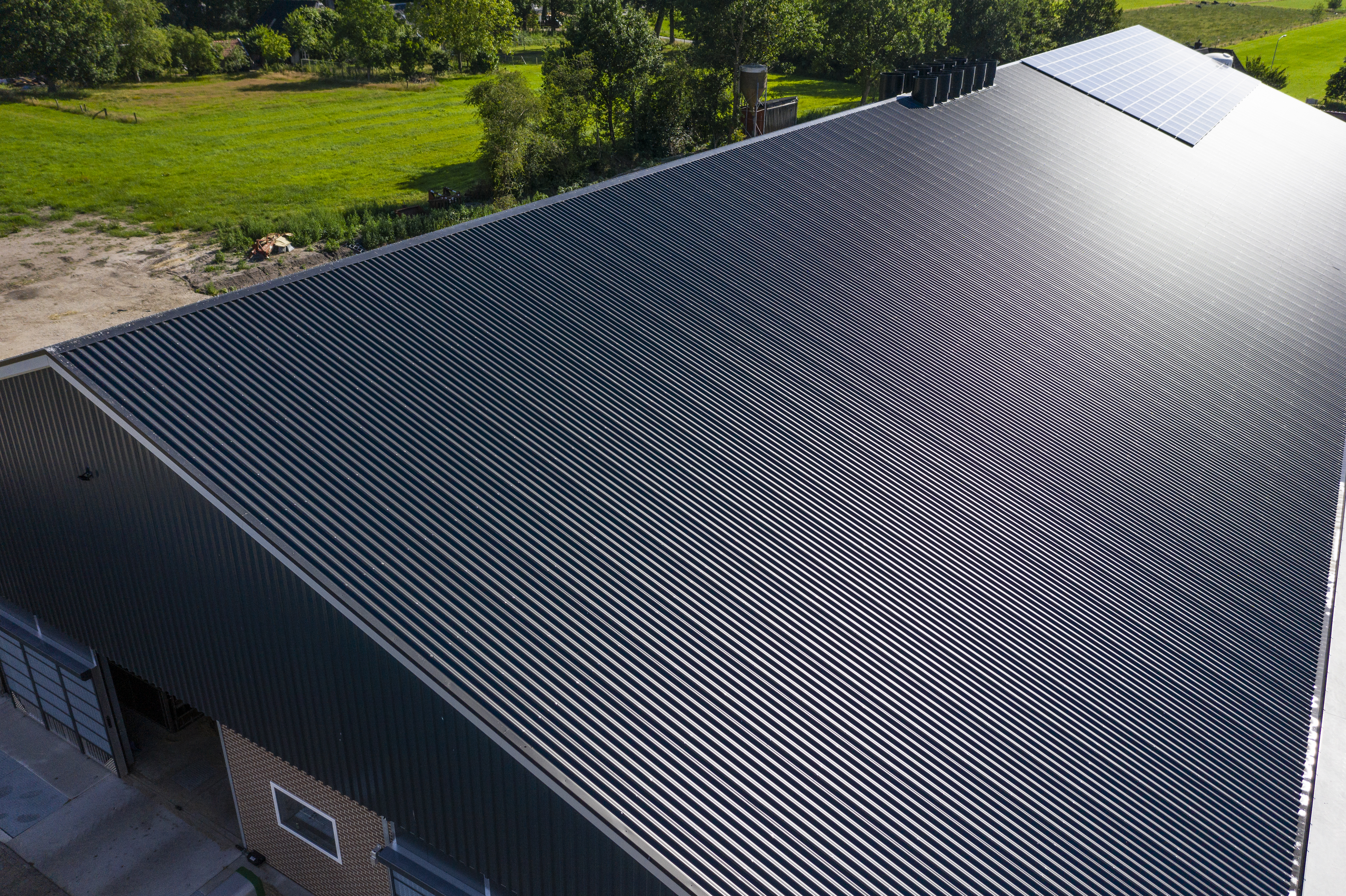 Deze nieuwbouw rosékalverstal is voorzien van een prachtig dak van zo'n 3400 m2 met het sandwichpaneel FALK 1000 GL EKO in de kleur FALK Black Matt.