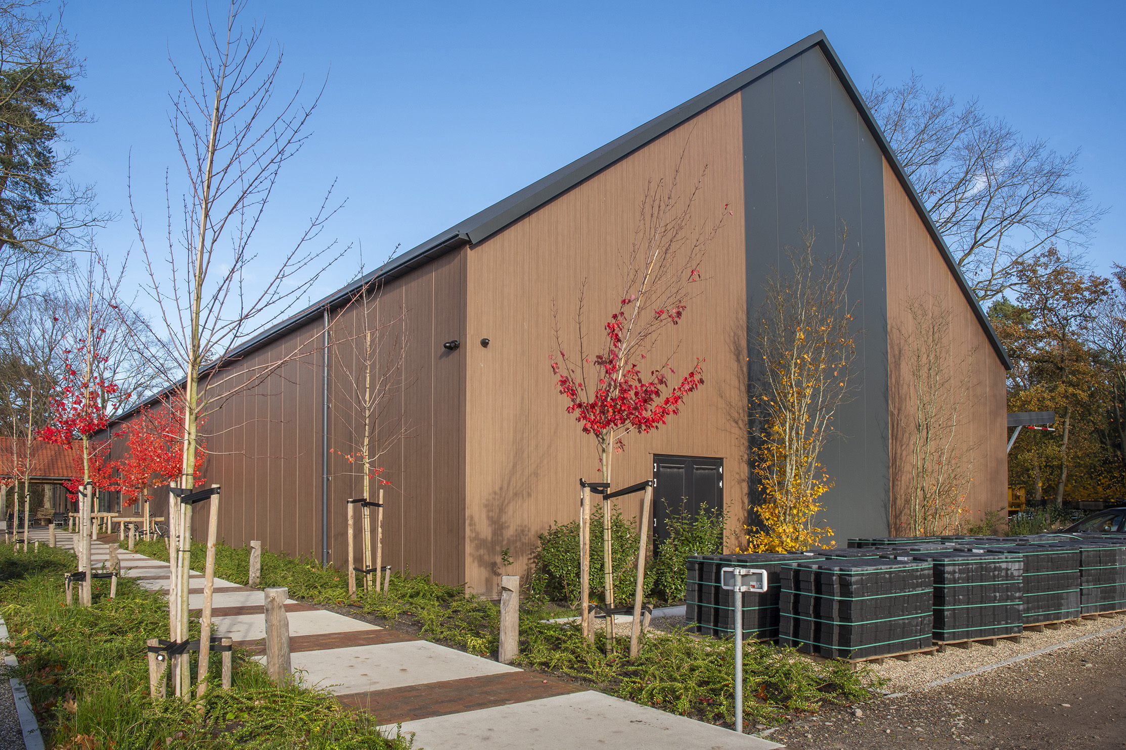 De nieuwste voorziening op het Drentse park is het Entertainment Centrum. Achter het hoofdgebouw staat een schitterend gebouw waarin je kunt klimmen, bowlen, gewoon kunt genieten van een hapje en drankje bij de SportsBar en voor de kinderen is er het Speelparadijs. Het gebouw is gerealiseerd met de FALK 1060 WB in de schitterende kleurencombinatie FALK Natural Beech en Antraciet Matt. Op het dak liggen de FALK 1000 GL golfpanelen in de kleur Antraciet Matt. Rondom het gebouw is keurige bestrating en beplanting aangelegd, en dat maakt het gebouw verder af. De vakmannen van Gebroeders Middelveld hebben dit mooie project gerealiseerd.